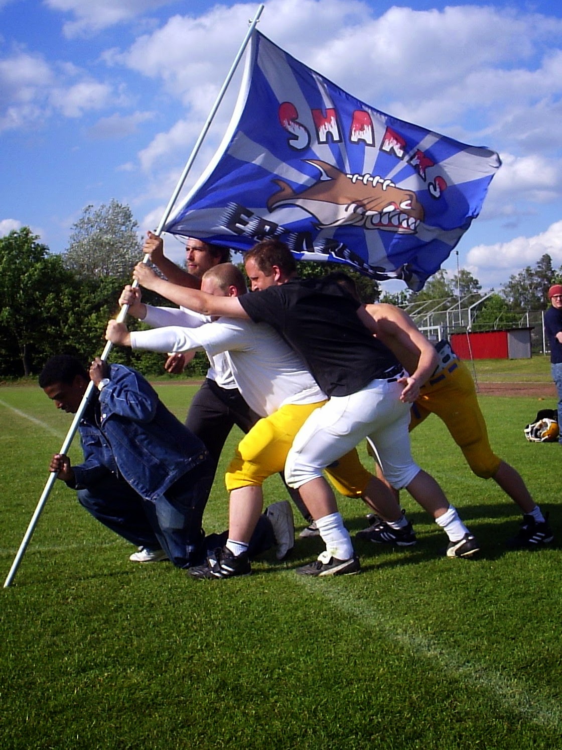 Die Erlangen Sharks wurden im Frühjahr 2003 von ein paar Football-Enthusiasten ins Leben gerufen. Am Anfang trainierten wir noch auf dem Wiesengrund, aber im Herbst 2003 nahm uns die SpVgg Erlangen als Abteilung bei sich auf. Seit nun mehr 11 Jahren spielen und trainieren wir auf dem Gelände unseres Hauptvereins an der Kurt-Schumacher-Straße. (Unseren Footballplatz mit Originalmaßen und Footballtoren verdanken wir den „Turtles“, die in den 50er Jahren in den Ferris Barracks der US-Army spielten.) Insgesamt besteht unsere American Football Abteilung aus ca. 90 Mitgliedern, die sich auf 4 Mannschaften verteilen.